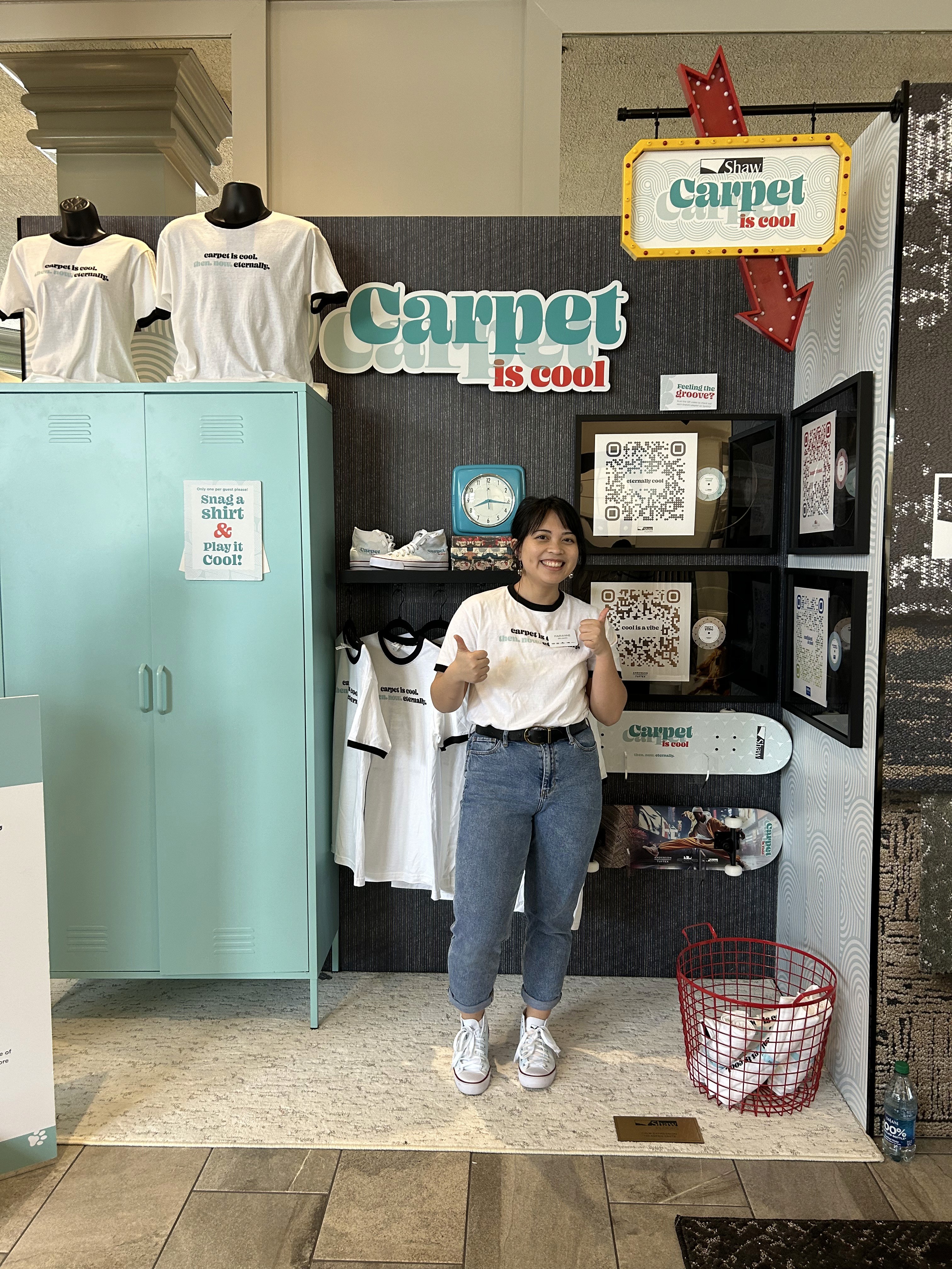 Carpet is Cool was born through experimentation with 70s inspiration and illustration. Over 3-4 months, Carpet is Cool was used to create two versions of a trade show booth built at 5 Shaw markets, animations, videos, and additional printed and physical material for parties, events, and in-store merchandise promotions. By early 2024, the Carpet is Cool campaign became an evergreen, long-lasting addition to Shaw Industries' ever-evolving collection of assets.