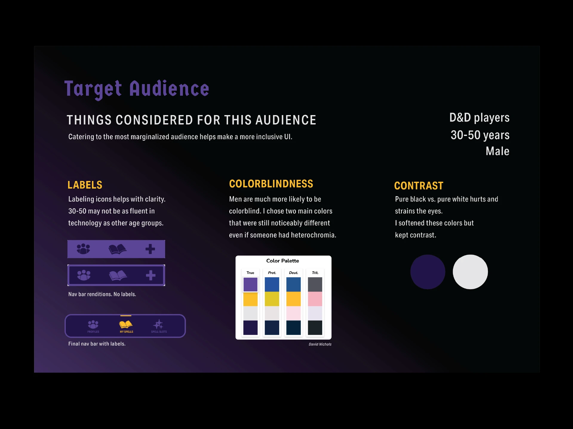 This app was created using Figma, including an interactive mockup. Elements were meant to mimic popular items from Dungeons and Dragons, but still tried to make everything legible and accessible.