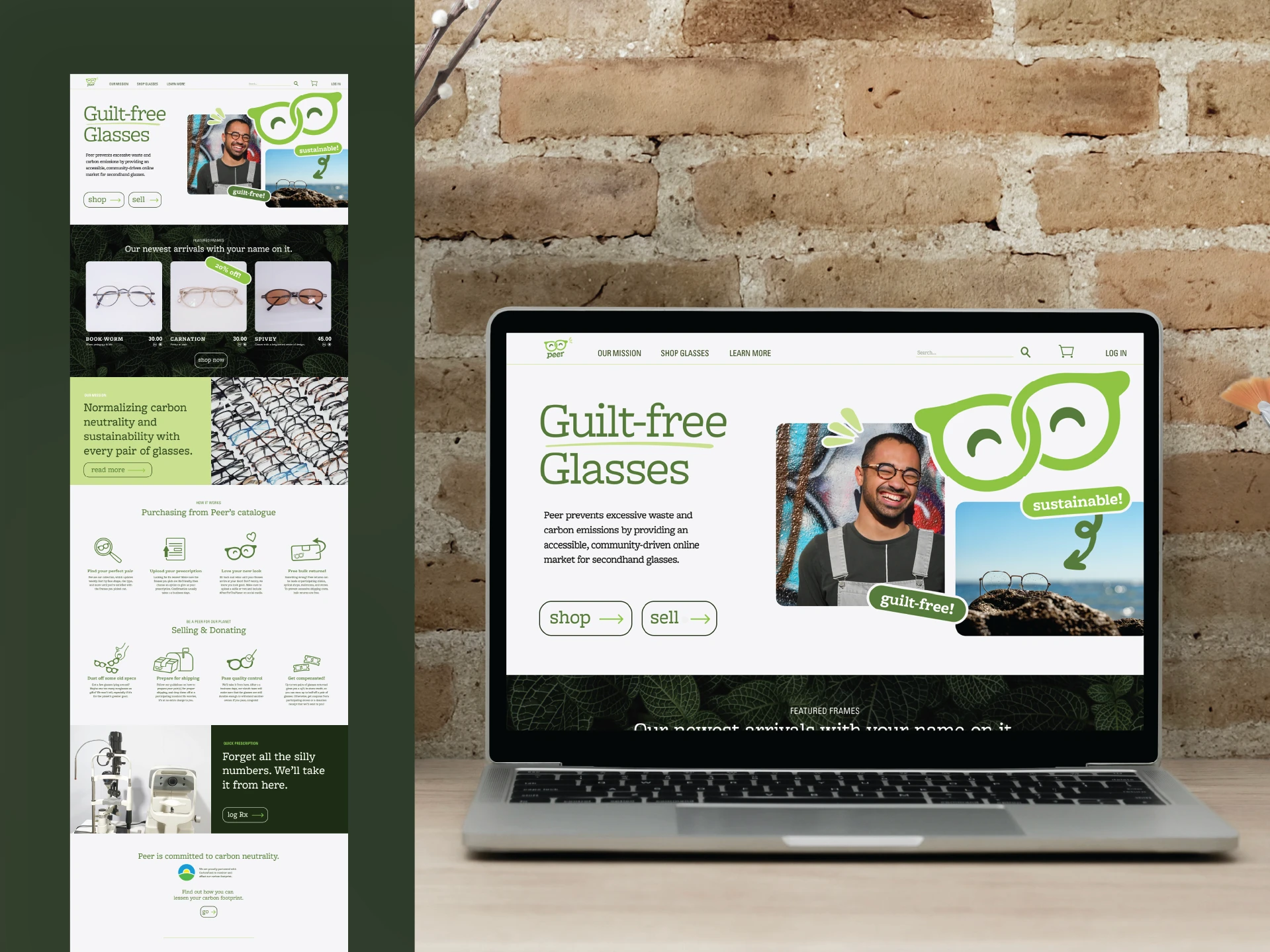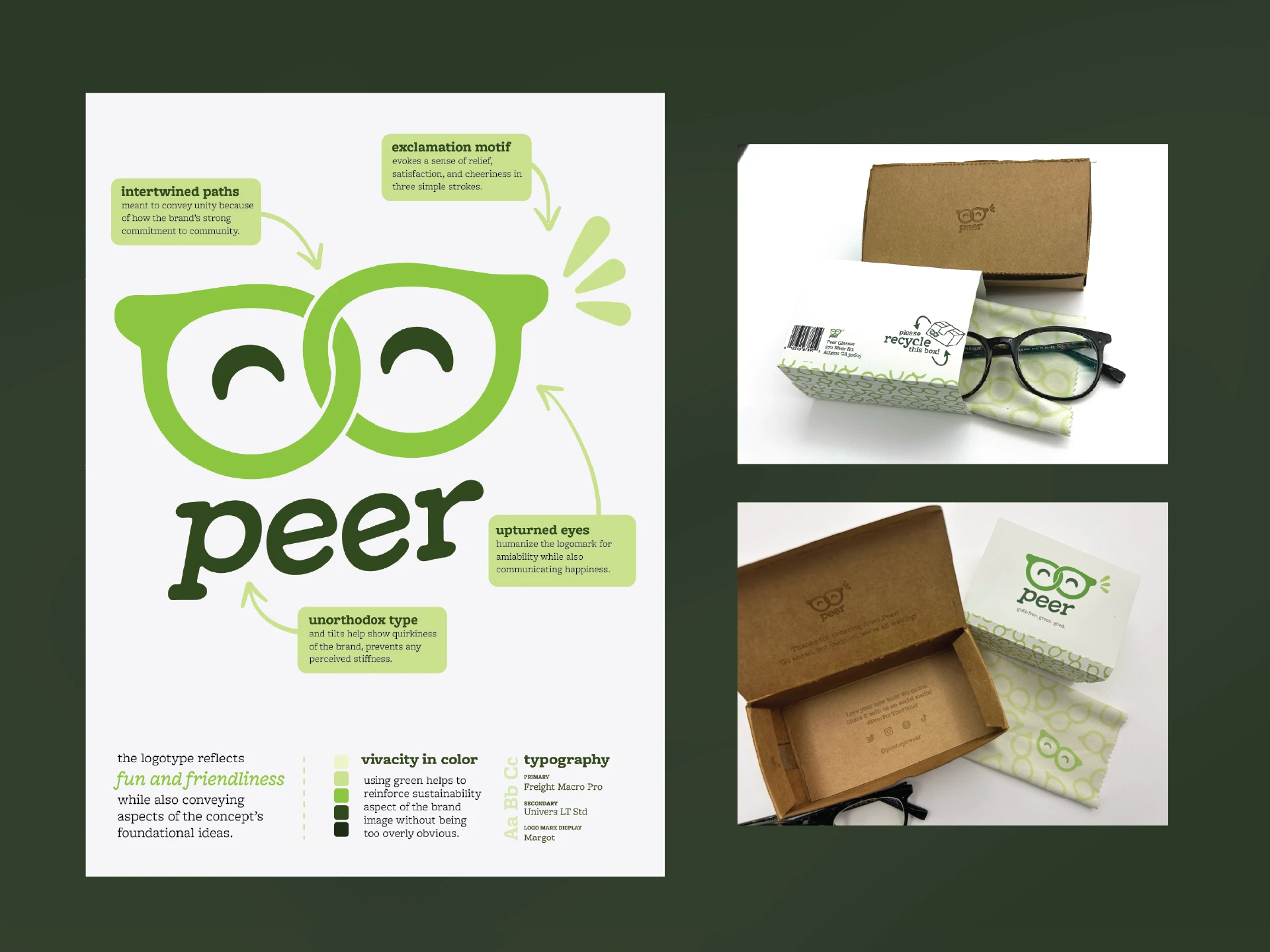 People who wear glasses often purchase a new pair every 2 years, which is wasteful. Peer is a senior capstone project that explores the greener possibility of the vision industry through consumer segmentation to the creation of a branded physical exhibit.